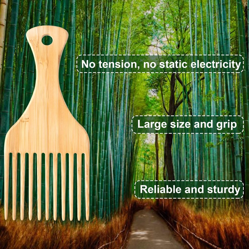 - Ergonomic Handle Design: The ergonomic handle of bamboo afro hair picks is comfortable to grip. The unique 11 wide teeth design perfect for combing long, thick and tangled hair.