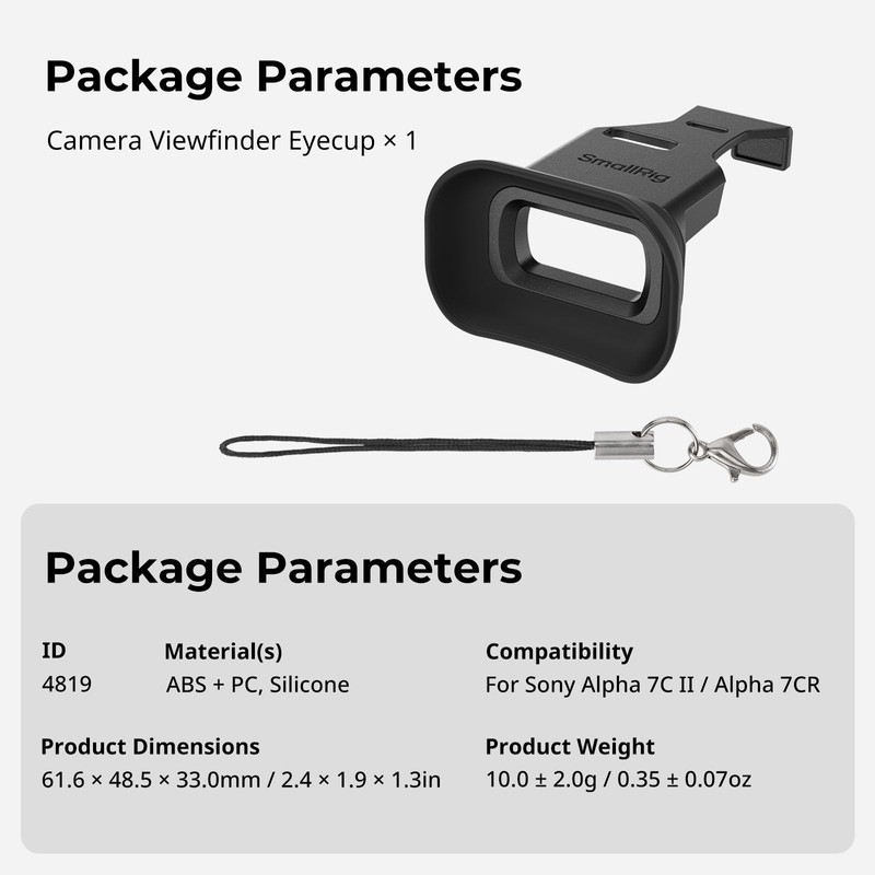 - Útil visor Eyecup: el visor de cámara SmallRig Eyecup 4819 es adecuado para Sony Alpha 7C II / Alpha 7CR, que puede evitar interferencias de luz, reducir los reflejos y el deslumbramiento de la luz circundante, mejorar la eficiencia de disparo y mejorar la experiencia de monitoreo