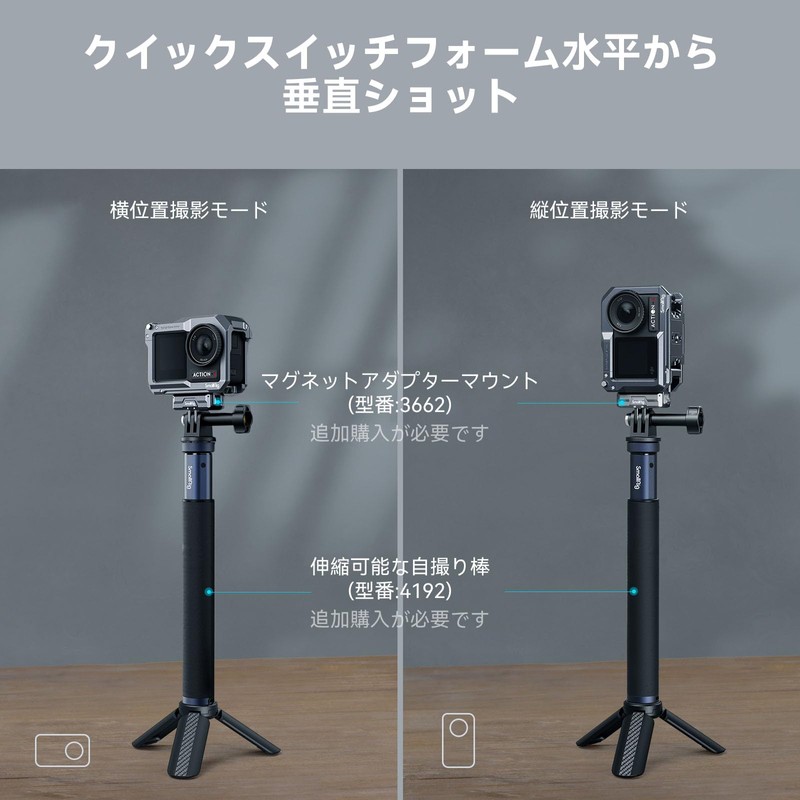 - 【Compatible with DJI Microphone and Original Adapter】 Attach the DJI microphone to the left side of the cage. The bottom and right side magnetic mount support the original magnetic quick release adapter for DJI or SmallRig Magnetic Adapter Mount 3662, which allows you to easily switch between horizontal shooting mode and vertical shooting mode