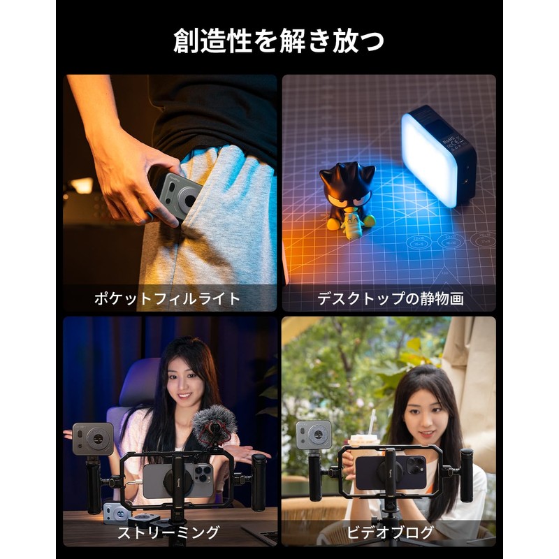 Usage scenarios: Lightweight flat photo and content creation including flat shooting at desktop level or small spaces (table shooting, figure shooting, portrait shooting) and video content shooting (short video, vlog, visitor, desktop level live broadcast)