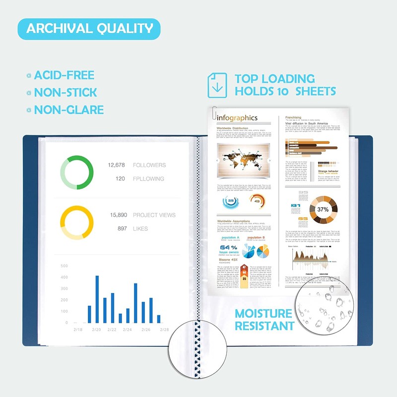 • 【Premium Quality】Display book folder A4 is made of high-quality and sturdy material, which is transparent and waterproof. Sturdy presentation folders with sheet protectors provide the best protection for your documents and paperworks. The corners are smooth and the surface is thick and flat