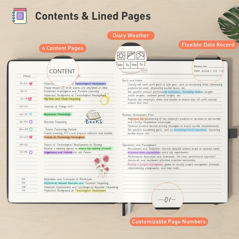 - [100gsm High Grammage Paper] The notebook is made of 100gsm high grammage paper, 20% thicker than normal paper. Smooth paper for smooth writing, no ink bleeding, suitable for most fountain pens. 180° easy to lay flat for comfortable reading and writing