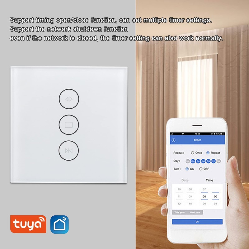 - Remote control and timing function: the intelligent WiFi curtain switch can also be controlled anytime and anywhere via Smart Life/for Tuya APP. Can set timing, mobile phone delay and real-time status feedback, allows you to schedule the exact time for automatically opening or closing curtains.