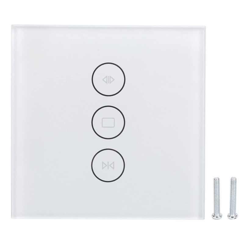 Smart Curtain Switch Tempered Glass Touch Panel WiFi Switch, Compatible with Google Home, IFTTT, Tuya, App Voice Control (White)