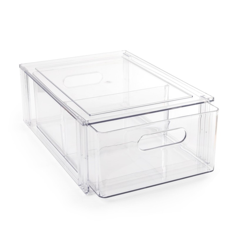 - PULL-OUT BIN - Doubles your shelf space storage and stacks.