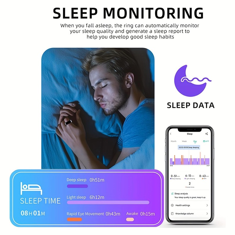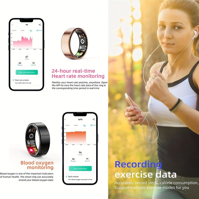 - 🌟【24/7 Health Monitoring at Your Fingertip】:Track your blood oxygen, heart rate, and blood pressure in real-time, day or night. View detailed daily, weekly, and monthly health data on the app to gain insights into your wellness and make smarter lifestyle choices.other functions:family care,remote photography,menstruation record,Smart rings size 7-13 are suitable for various large and small size needs of men and women.