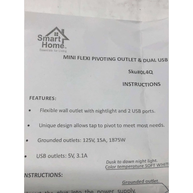 Smart Home Esent. For Living Mini Flexi Pivoting Outlet & Dual USB w/ Nightlight