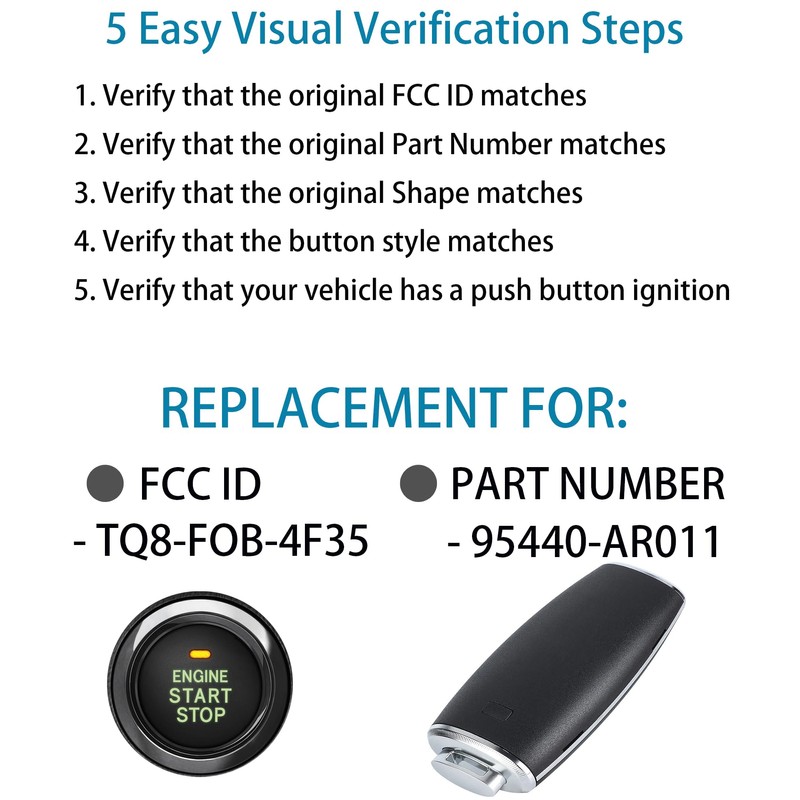 - 【High-Quality Car Smart Key】Every Alliskeys Keyless Entry Remote Key Fob is Fully Pre-tested by Professional Locksmith Tools before Shipping. All Our Key Fobs are Pre-installed with Battery and Electronics. Replace your lost or broken remote key quickly and easily with this Proximity Smart Key. Only fit for vehicles with Push-button Star