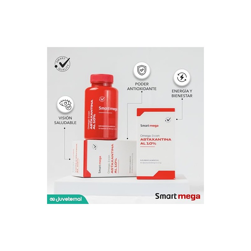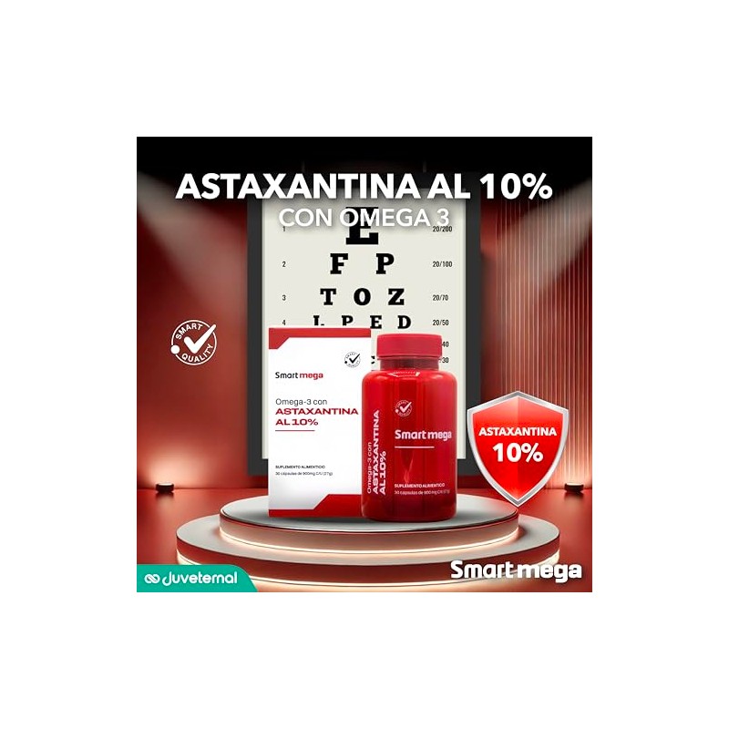 SMART MEGA Astaxantina 10 Ultra Pura con Omega 3, Proteccin Avanzada para Ojos, Corazn y Clulas, 30 Cpsulas