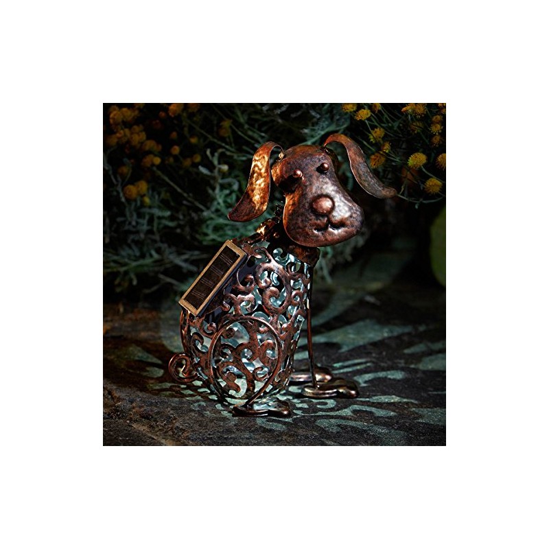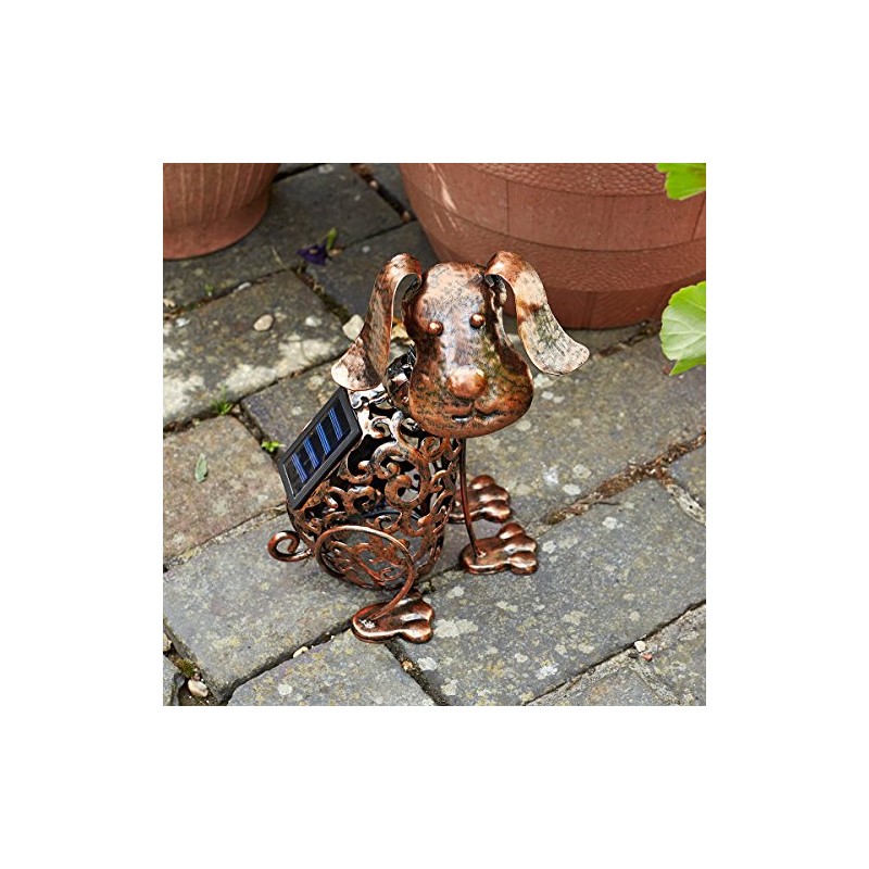 Create a statement in your garden with the solar powered, unique, handmade metal filigree dog silhouette light.