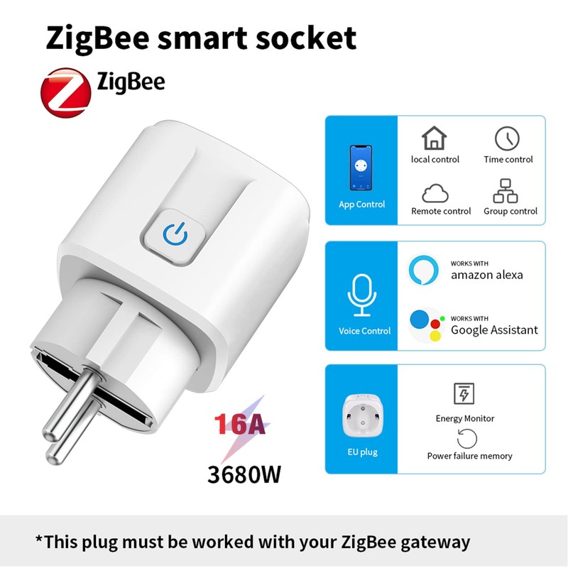 Smart Plug Zigbee Smart Outlet: Smart Socket with Timer & Countdown Function, Tuya App and Voice Control, Energy Monitor, ZigBee Hub Required, Smart Switch Works with Alexa (Zigbee, 1 Pack)