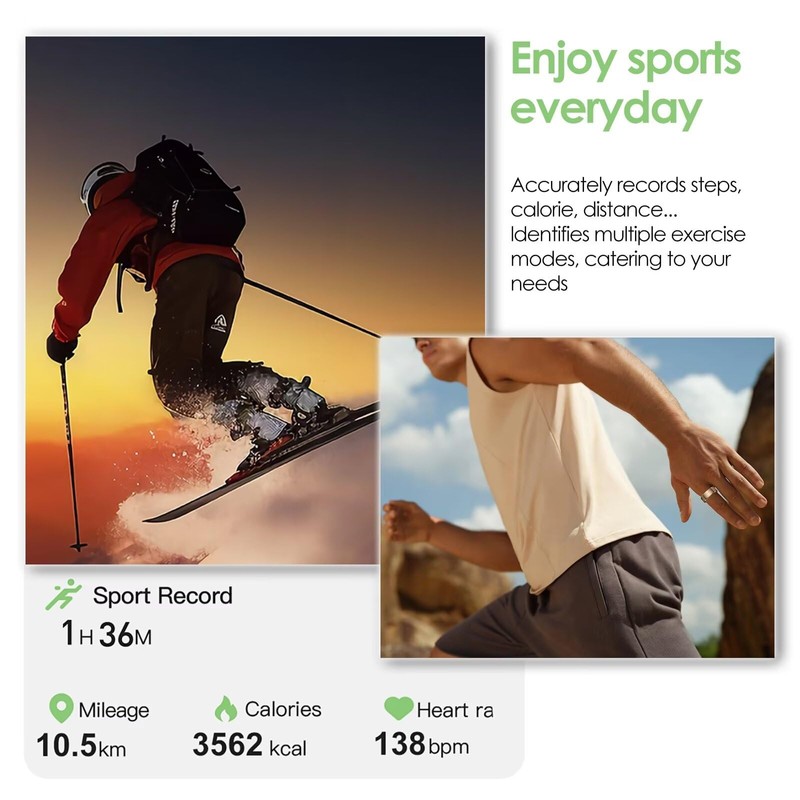 - Smart ring with heart rate and sleep tracker: With advanced technology, this fitness ring constantly monitors your heart rate to provide you with valuable data for your health. You can activate the function for 24-hour heart rate measurement in the corresponding app. Sleep analysis ring: At night, sleep monitoring mode estimates sleep duration based on your exercise activity and help you establish healthier sleep habits.