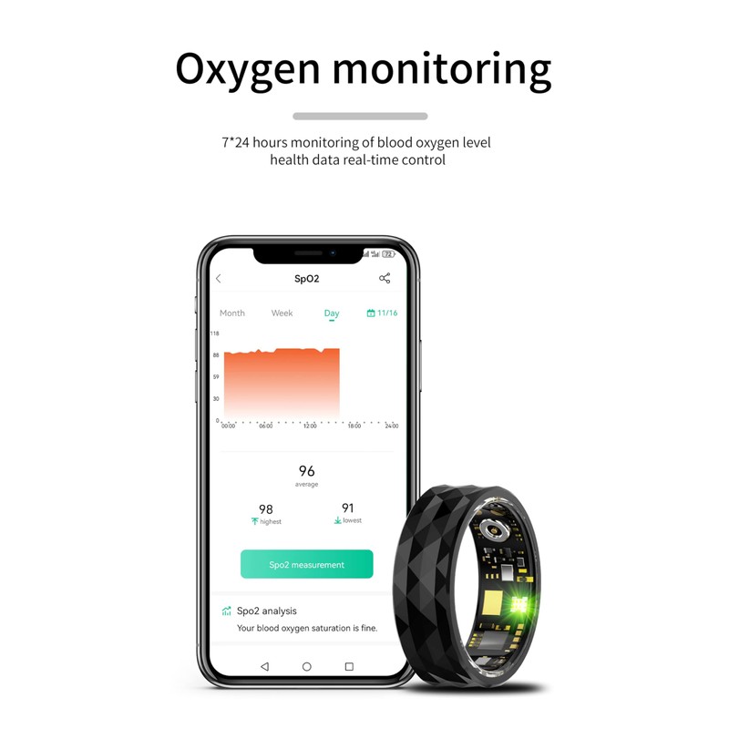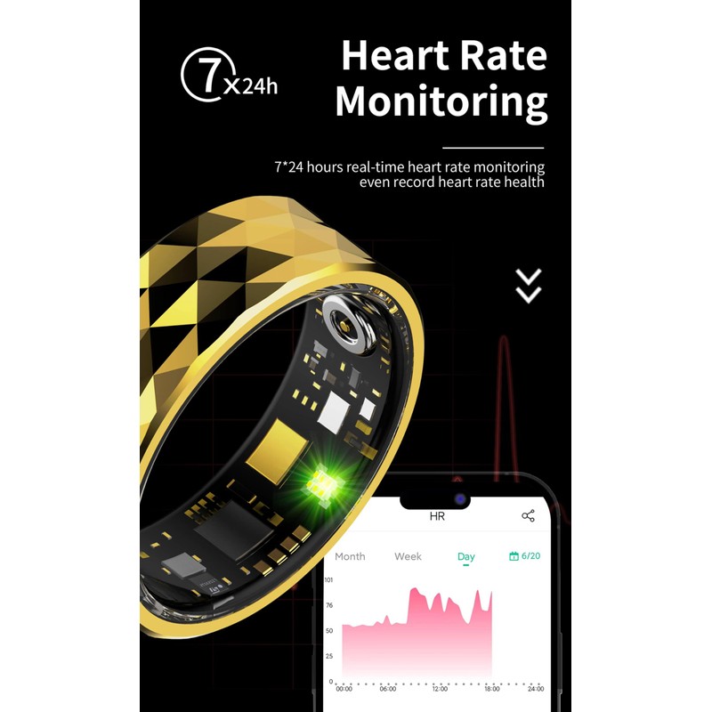 - HEALTH MONITORING: smart ring advanced sensors track heart rate, blood oxygen levels, and sleep patterns in real-time for comprehensive health insights