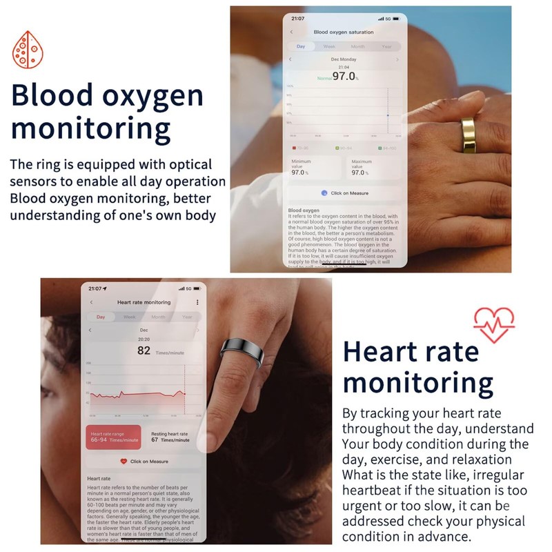 Please measure the dimensions before purchasing: before you buy one of our smart rings, please measure your finger accurately. We recommend you take your measurements in the afternoon or early evening when your fingers naturally swell a little, which will help you get a more accurate fit. Once you have completed your sizing, you can confidently choose the right fitness tracking smart ring for you.