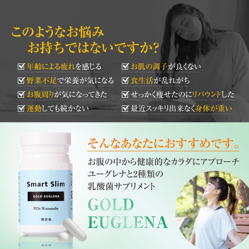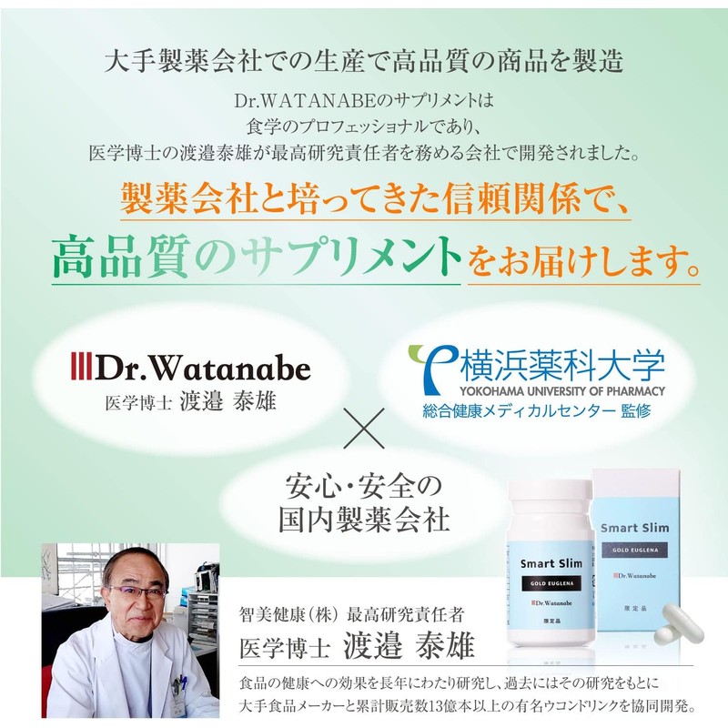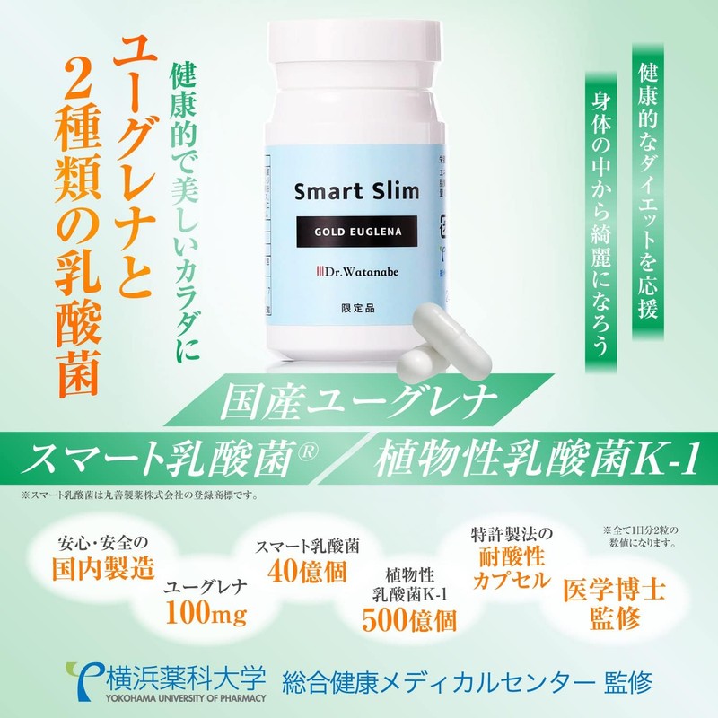 Smart Slim Euglena Lactic Acid Bacteria Supplement Made in Japan Supervised by Yokohama Pharmaceutical University Supervised by Doctor of Medicine Dr. Watanabe