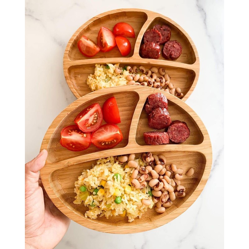 Material Type: Dish/Handle: Laminated Bamboo Wood, Edible Urethane Coating Suction Cup/Tip: Silicone Rubber