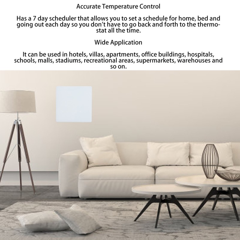 1、Accurate Temperature Control: This programmable Wifi thermostat has accurate temperature control with a temperature accuracy of ±1°C, which can well control the temperature control of various situations. 2、7 Days Scheduler: This WiFi smart thermostat has a 7 day scheduler that allows you to set a schedule for home, bed and going out each day so you don't have to go back and forth to the thermostat all the time. 3、Phone Remote Control: This digital thermostat allows you to control the temperature remotely via a mobile app to keep your pet comfortable and prevent pipes from freezing, and you can share the controls with guests and family via the for Wyze app. 4、IP20 Proof Grade: This smart home thermostat is made of excellent flame retardant PC material for the shell, which is sturdy and abrasion resistant, not easy to be damaged, and it has IP20 proof grade. 5、Wide Application: This Wifi thermostat has a wide range of applications and can be used in hotels, villas, apartments, office buildings, hospitals, schools, malls, stadiums, recreational areas, supermarkets, warehouses and so on.