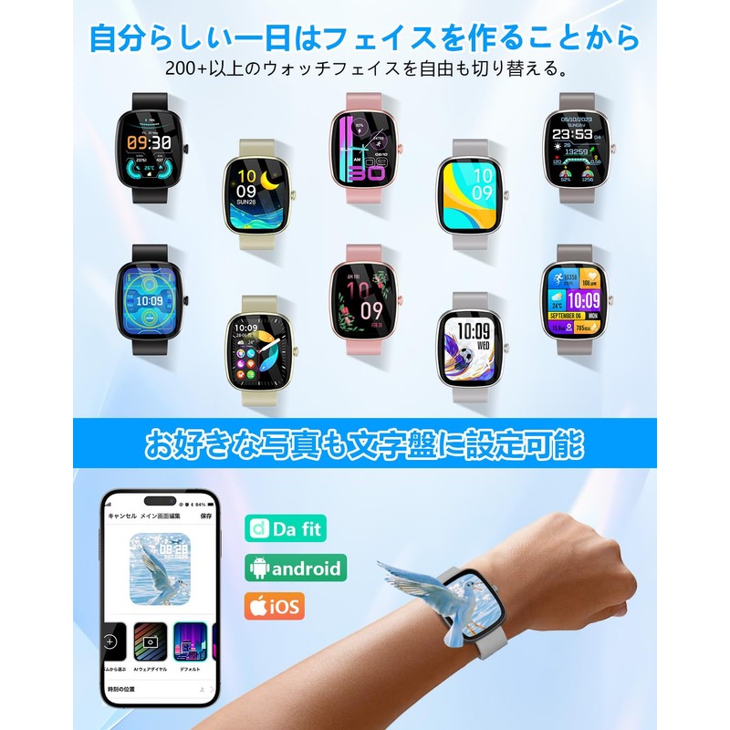- (Large Capacity Battery) Package: Smart Watch x 1, Charging Cable x 1, Japanese Instruction Manual x 1. This smart watch is compatible with Android 5.0, iOS 9.0, and Bluetooth 5.3 and above. The lightweight and stylish design is both sporty and practical, making it the perfect gift for Respect for Christmas, New Years, Birthdays, Father's Day, Mother's Day, anniversaries, etc. The smart watch battery has a large capacity of 230mAh. It can be fully charged in about 1.5 hours, can be used continuously for 7-10 days under normal use, and up to 15-20 hours in standby mode (battery life may vary depending on actual usage and environment). Eliminates the hassle of frequent charging. Connect the included magnetic charging cable to the charging terminal of your smart watch to start charging. Moreover, we have one year warranty, if you have any questions, please feel free to contact us. The Japanese app can be downloaded from the Google Play Store and Apple Store, and you can read the QR code and download it