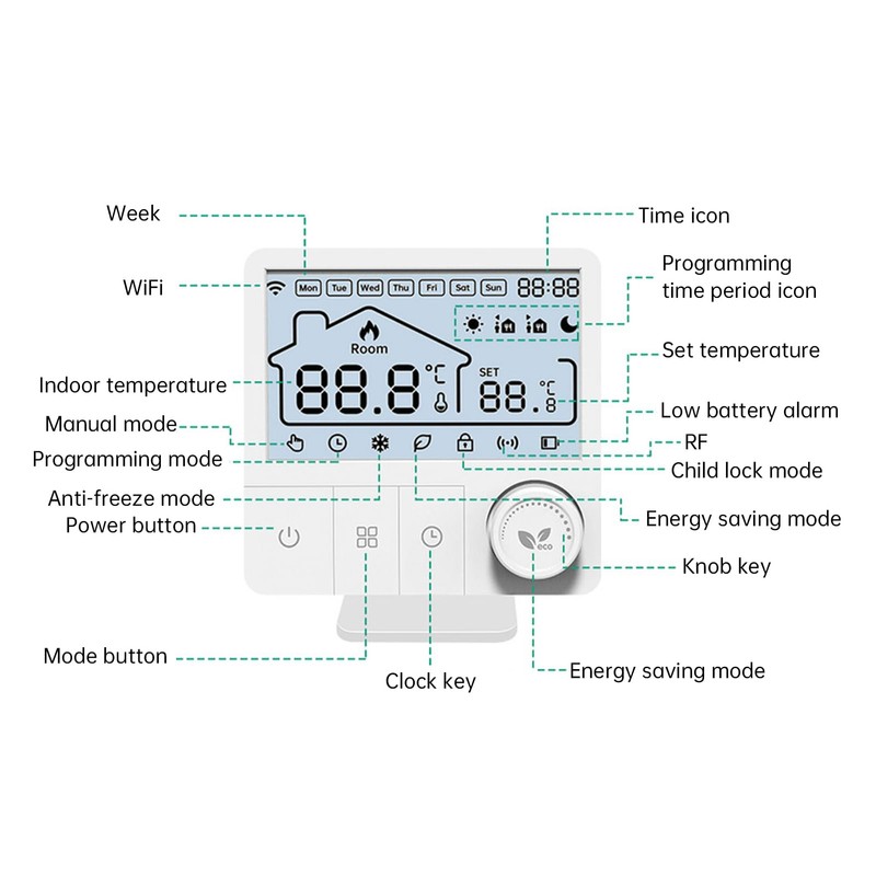- [User-friendly Interface and Programming Options] Easily set workday and weekend schedules for tailored comfort.