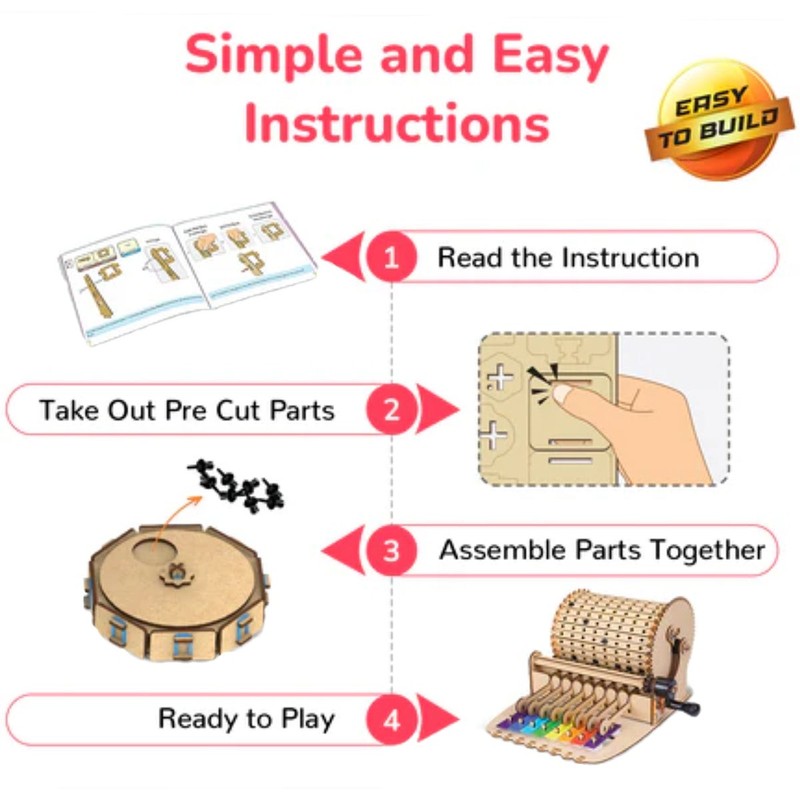With the Xylofun Music Machine, every step of the assembly process becomes an opportunity for hands-on learning. As children construct their instrument, they’ll gain a deeper understanding of how gears, ratchets, and pawl mechanisms come together to create the sound they love. It’s the perfect introduction to engineering and physics in a way that’s both fun and educational.