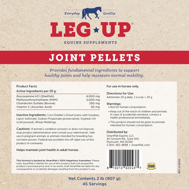 - Great For All Horses: SmartPak’s Leg Up Joint Pellets are a great option for horses in no work and up to light work, helping their joints stay healthy and strong