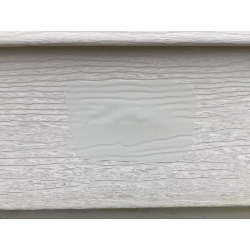 Make your damaged Vinyl Siding look Brand New! It's Quick and Easy! Purchase includes TEN large patches: Each are 8" x 6" in size. Instructions included. PHOTO 1: BEFORE REPAIR PHOTO 2: AFTER REPAIR *Super Durable 4.7 mil vinyl patches *UV Resistant & designed to withstand all outdoor temperatures *Pressure-activated adhesive backing *Simply paint (spray or brush it on) and cut to size *Retains your siding texture and woodgrain Patches are white and easily painted to match your vinyl color. After paint dries simply cut with scissors to the desired size, then remove adhesive backing and pressure apply. |