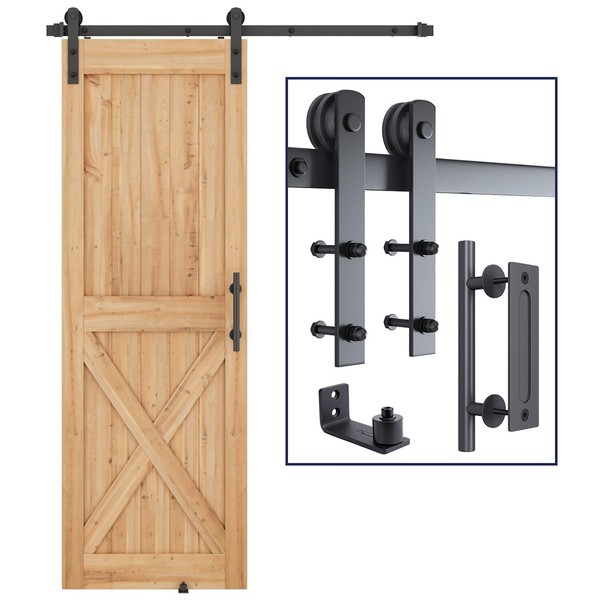SMARTSTANDARD 5 FT Heavy Duty Sturdy Sliding Barn Door Hardware Kit, Black, (Whole Set Includes 1x Pull Handle Set & 1x Floor Guide) Fit 28''-30" Wide Door Panel (I Shape Hanger)