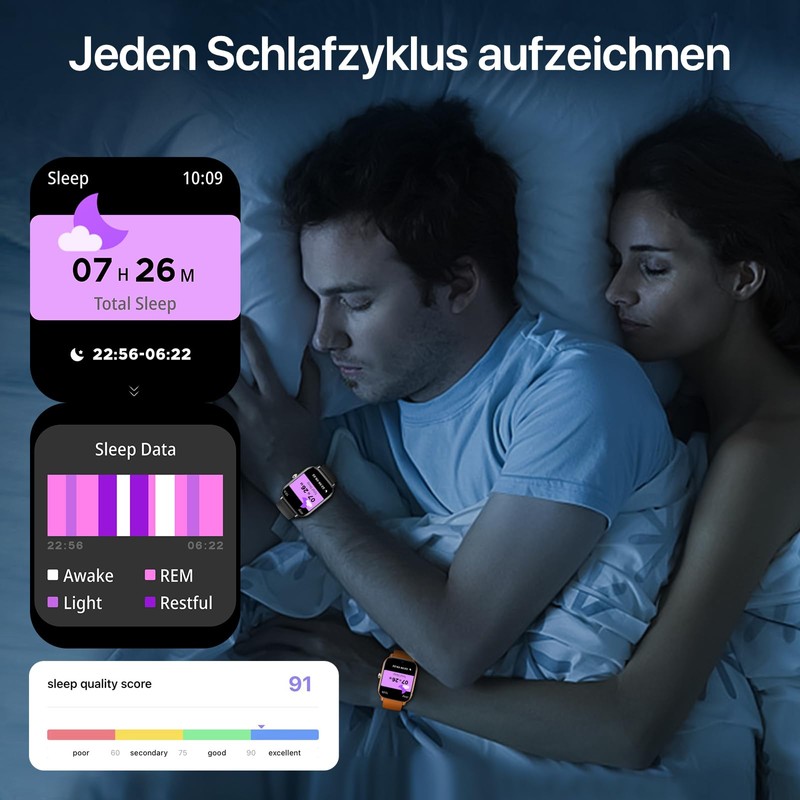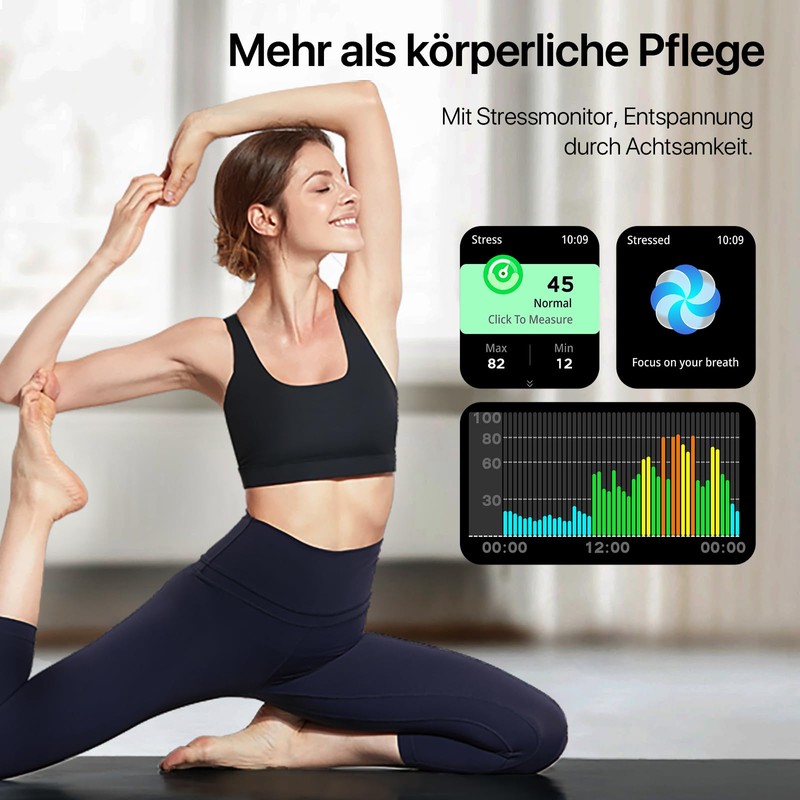 - ✅【Ganzheitliches Gesundheitsmanagement – Rund um die Uhr Im Blick】Behalten Sie Ihre Gesundheit jederzeit im Blick: Mit Herzfrequenzmesser, Blutsauerstoffanzeige, Schlafanalyse und Stress-Tracking ist diese Smart Watch Herren ein echter Gesundheitscoach. Speziell für Frauen bietet diese Uhr auch Funktionen zur Zyklusverfolgung – ein Pluspunkt für Nutzerinnen, die eine vielseitige Smartwatch Damen mitdenken.