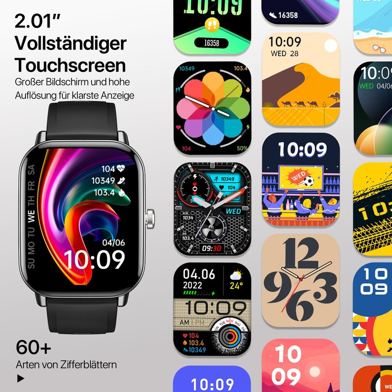 - ✅【2,01" Extra-Großes Display – Für Beruf, Freizeit & Stilbewusste】 Diese elegante Smartwatch für Herren Damen überzeugt mit einem 2,01-Zoll-HD-Touchscreen – ideal für den Berufsalltag oder sportliche Aktivitäten. Ob im Büro oder unterwegs: Nachrichten, Termine oder Fitnessdaten sind auf dem großen Display stets gut ablesbar. Über 100 anpassbare Zifferblätter machen sie zur perfekten Uhren Herren Smartwatch, die sich Ihrem Stil anpasst.