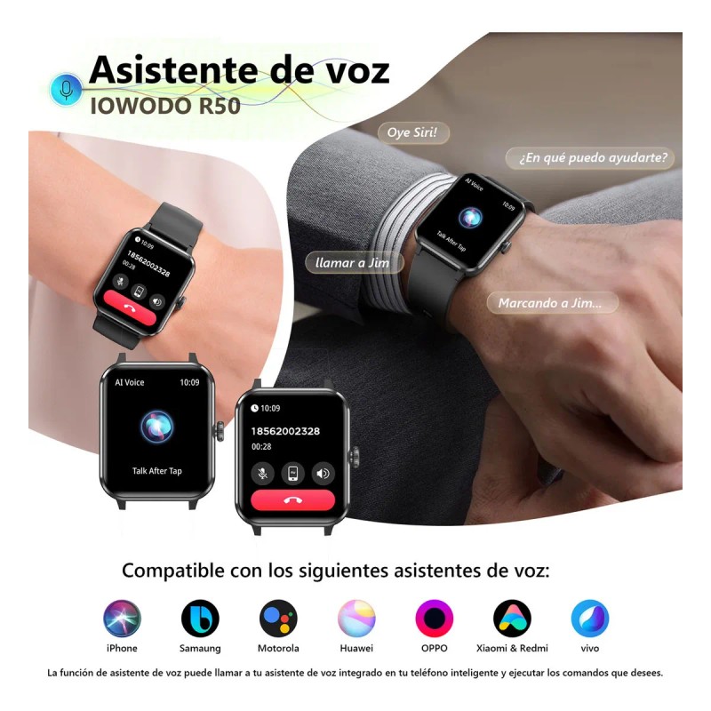 ¡Mantente conectado y cuida tu salud con estilo! El Smartwatch Iowodo BVR50 en color negro te permite realizar y recibir llamadas vía Bluetooth, monitorear tu frecuencia cardíaca, sueño y más. Su diseño deportivo y pantalla táctil de 1.85" lo convierten en el accesorio perfecto para tu día a día. Resistente al agua hasta 50 metros y con una batería de hasta 7 días de duración. ¡Tecnología y funcionalidad al alcance de tu muñeca!