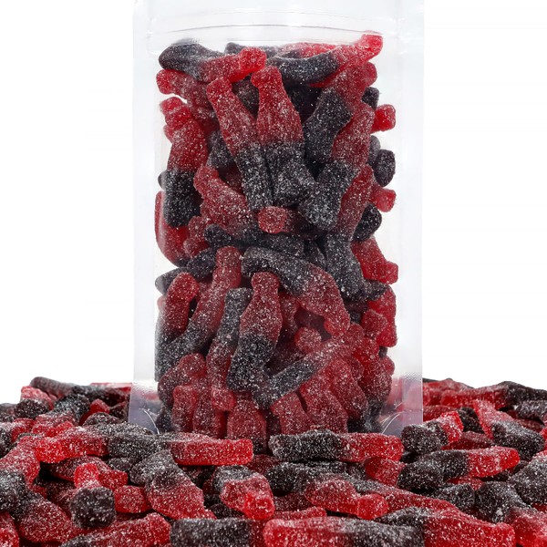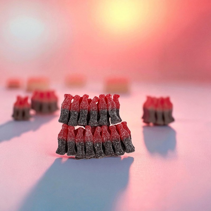 • Shaped like bottles of cola, these delicious gummies differ from our other cola bottles in that they have a dusted sugar coating.