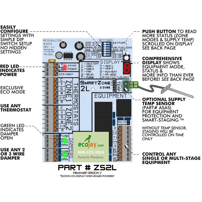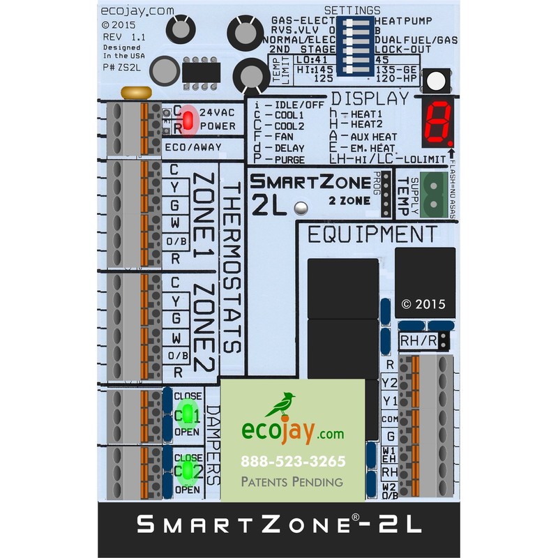 SmartZone-2L: 2 Zone Controller KIT w/Temperature Sensor - Replace Honewell, ewc, zonefirst hvac zone control panels