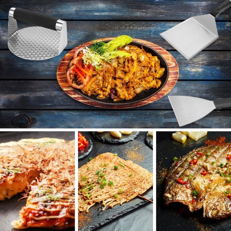 - Take-It-Anywhere: Effortlessly make delicious burgers wherever you are with our smash burger press kit. Its lightweight and compact design makes it easy to carry, ensuring you can enjoy perfectly smashed burgers anytime, anywhere.