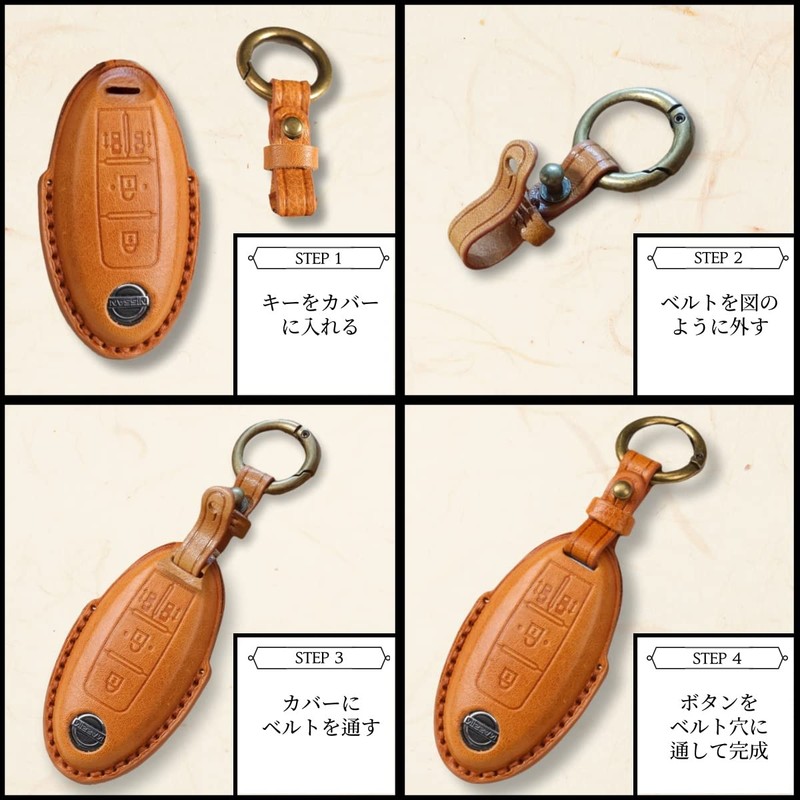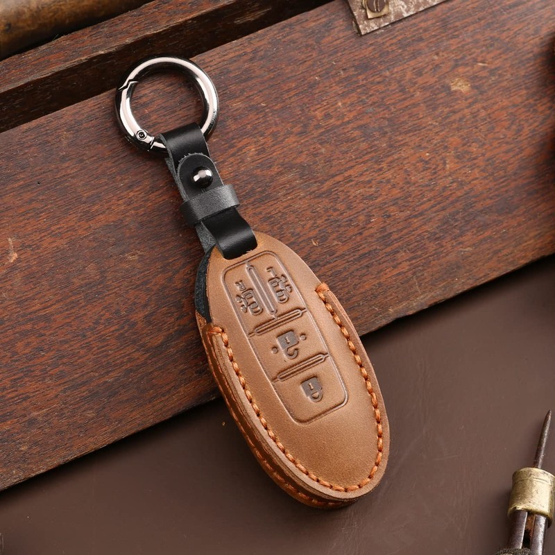 - ■ This product is handmade by artisans using high-quality cowhide leather. It helps prevent the smart key from scratching, and falling