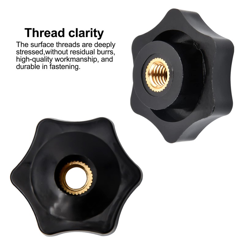 - About details: you can receive 12 star handle screws with black thread. Female Thread Diameter: M6; Head Diameter: 32mm; Head Thickness 7mm Please check the product size before purchasing.
