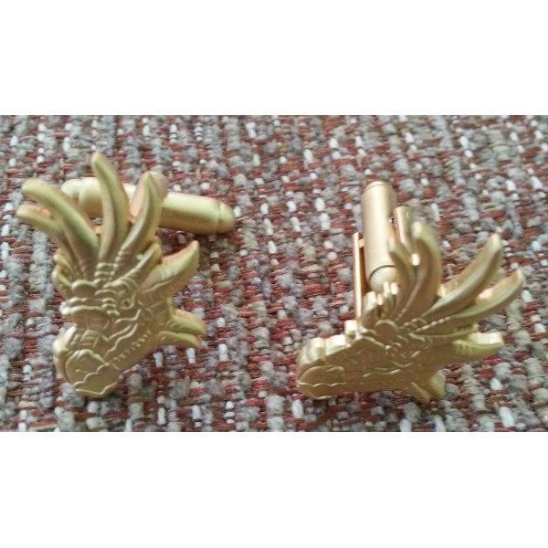SMAUG DRAGON HEAD (misty gold plate) Cuff Links - GAME OF THRONES HOBBIT DRAGON