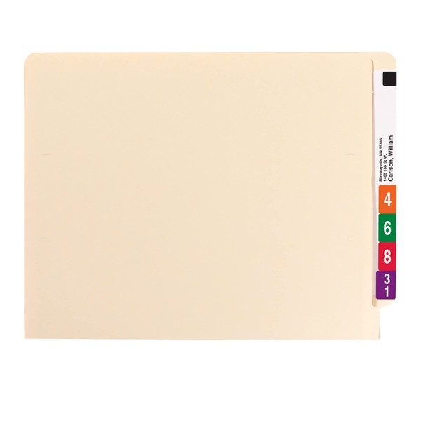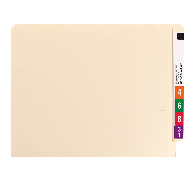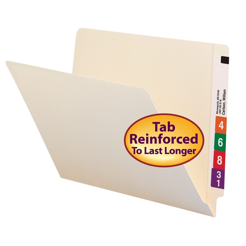 The industry standard for efficient shelf filing, these folders feature a reinforced tab for strength, embossed lines for easy label application and an undercut front panel for label readability. Popular for medical, dental and hospital filing systems as well as for very large records management systems in financial and insurance firms. Includes 100 letter size folders (12-1/4” W x 9-1/2”H). Each folder has a reinforced straight-cut tab. Proudly made in the USA. Contains 10% recycled content, 10% post-consumer material and is SFI Sourcing Certified.