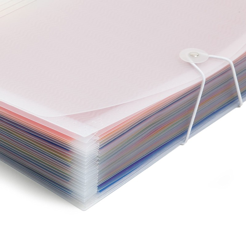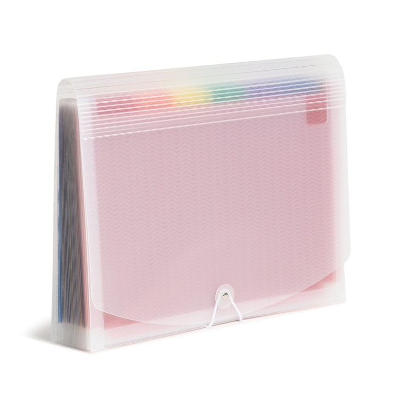- Includes 1 letter size (13” W x 9-3/4” H) clear poly expanding file with 24 pockets and colorful dividers to keep your documents sorted
