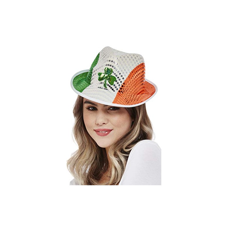 Smiffys 51117 Paddy's Day Irish Flag Sequin Trilby Hat, Unisex Adult, Green, One Size