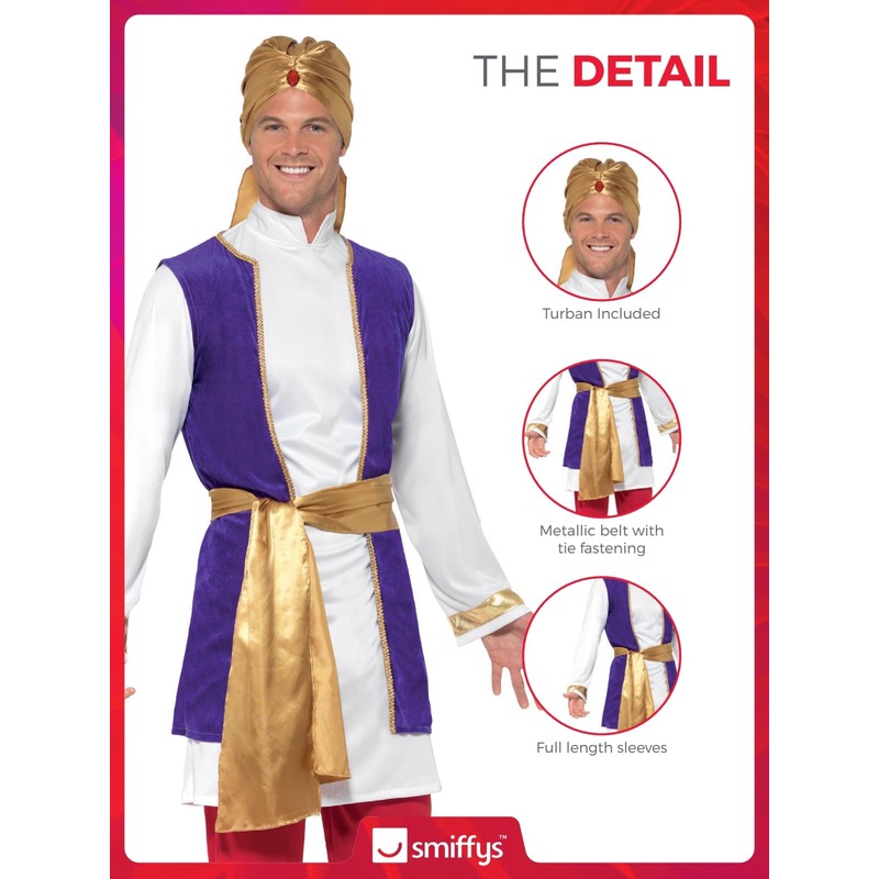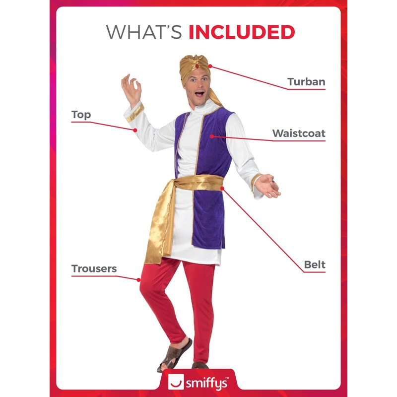 • Includes Arabian Prince Costume, Multi-Coloured, with Top, Waistcoat, Trousers, Belt & Turban