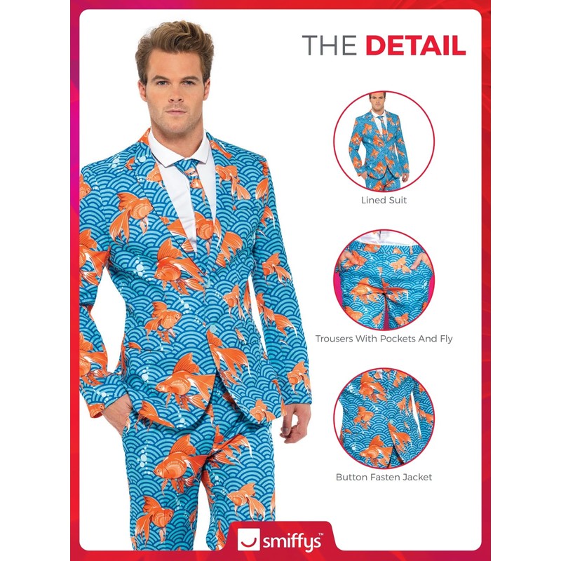 Smiffys mens Goldfish Suit, Blue, L - US Size 42"-44"
