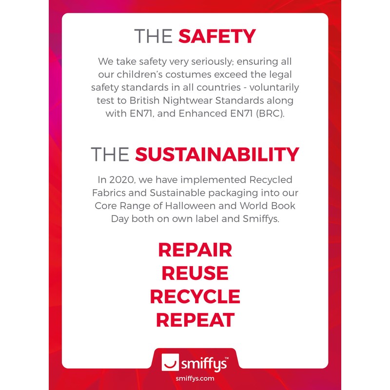 - Please note that all our Smiffys products will always come in full Smiffys branded packaging.