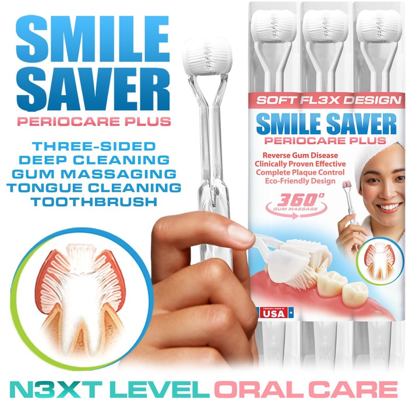 - IMPROVE GUM HEALTH :: The Periocare3D 3-Sided Toothbrush automatically applies the dentist recommended 45 degree angle to the gum line to easily clean the plaque along gums which can lead to gingivitis, tooth loss and bad breath. Plus, gentle massaging bristles strengthen gum tissue and promote healthier gums.