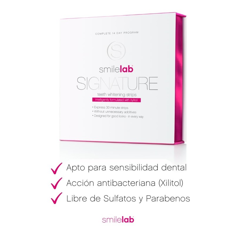 - Signature Zahnaufhellungsstreifen haben eine Sitzungsdauer von 30 Minuten für 14 Sitzungen.