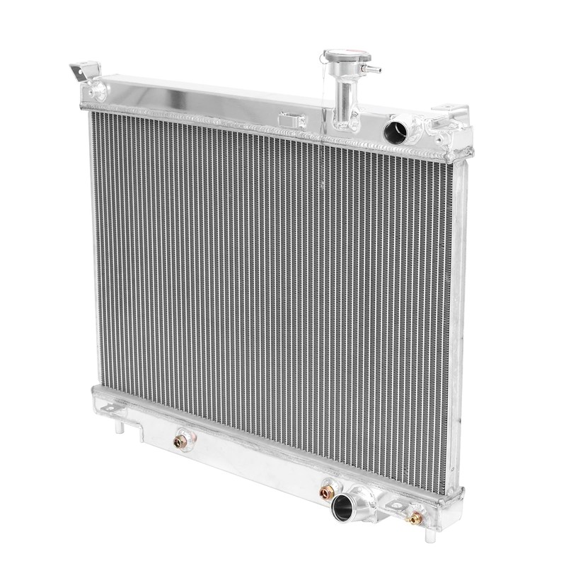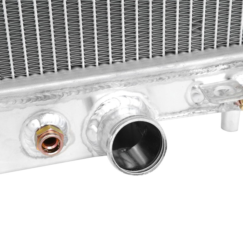 This Aluminum Radiator is designed to provide maximum cooling efficiency to prevent premature engine failure. Its light-weight, and high-heat transferring aluminum features a tube and fin design that, dramatically increases surface area that enables the heat to dissipate more efficiently. This Aluminum Radiator is at least 40% more efficient than stock ones. Most importantly, it has a much higher capacity for coolant than stock ones, which means that your cooling system will be more efficient and will be more resistant to temperature surges in racing applications.100% Brand new and never been used.