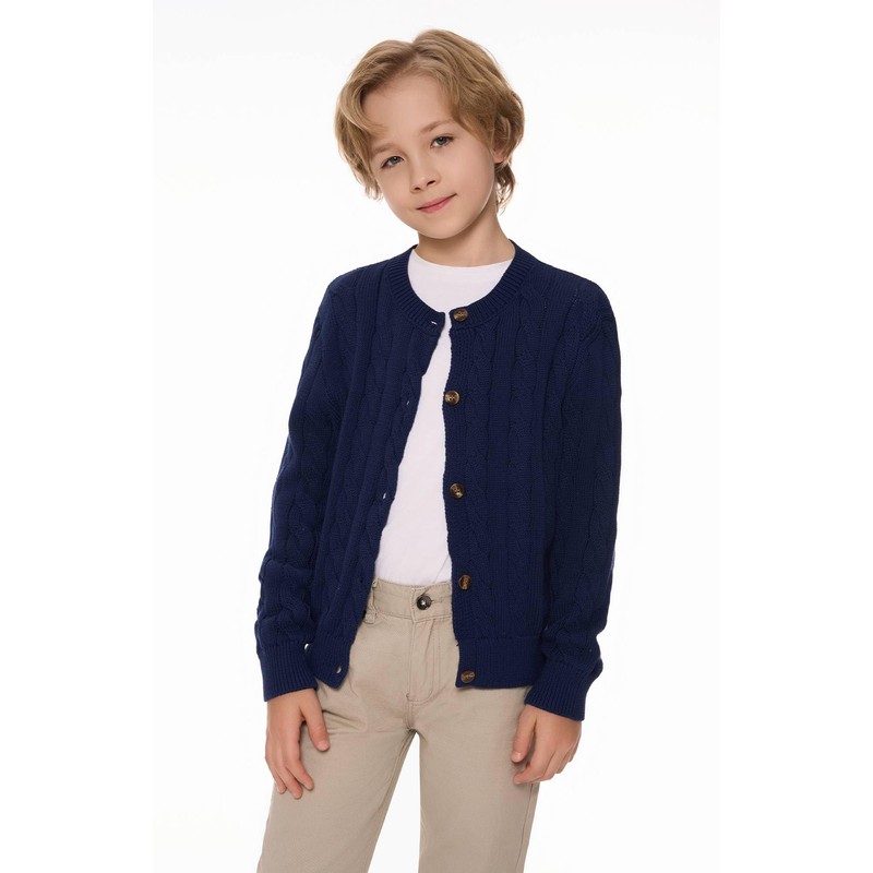 SMILING PINKER Girls' Aran Cardigan, Boys, Children, Knitted Crew Neck, Cotton, Chunky Pullover Jacket with Button, navy