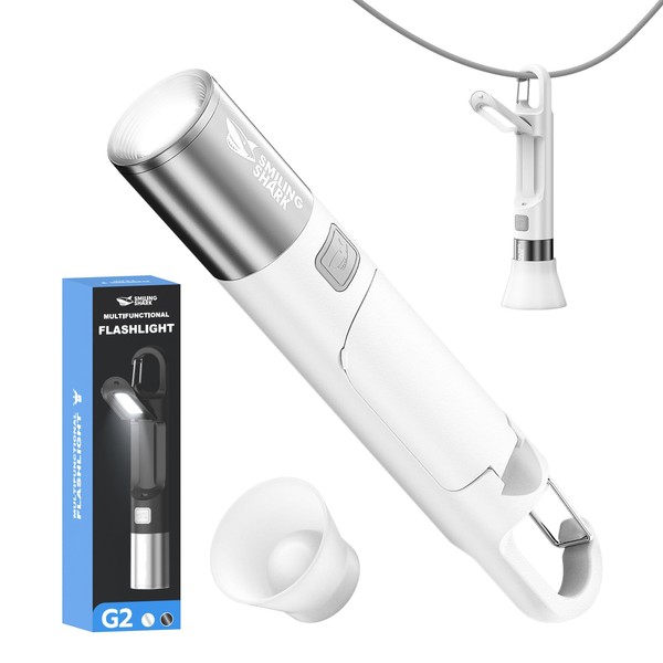 Smiling Shark LED Flashlight, G2 Small Flashlights Powerful Rechargeable with COB Sidelight & Hook and Diffuser 3 Mode Zoomable Multi Functional Camping Flash Light for Outdoor/Hiking/Emergency, White