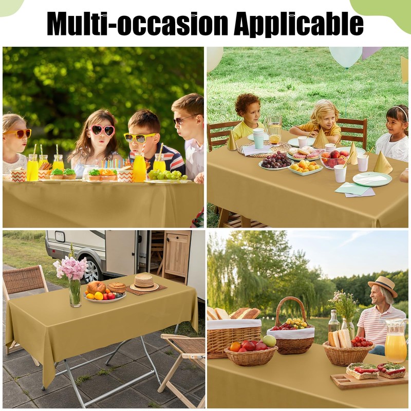 - [Waterproof & Easy Clean] The surface of our plastic table cloth is waterproof, providing protection for your table from spills and stains. Simply wipe the tablecloth with a damp cloth to easily clean. After use, just dispose of it, and you're done!
