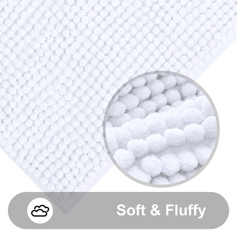 smiry Non Slip Chenille Bath Mat, 40 x 60 cm, Extra Soft Bathroom Mat, Super Absorbent Fluffy Bath Mats for Bathroom, Quick Dry Machine-Washable Bath Rug Foot Mat, White