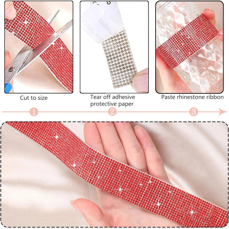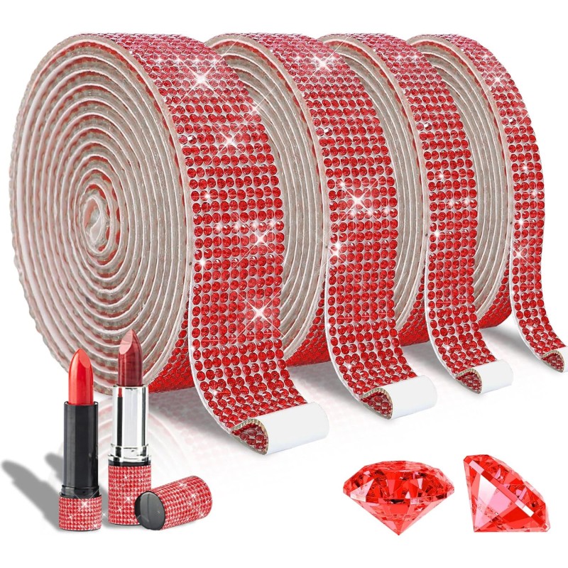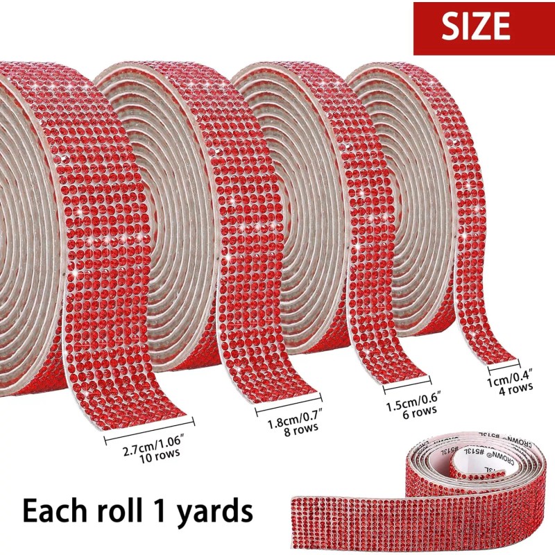 SMITH 1 4 Pack Different Width Red 2mm Rhinestone Crystal Diamond DIY Decorative Sticker